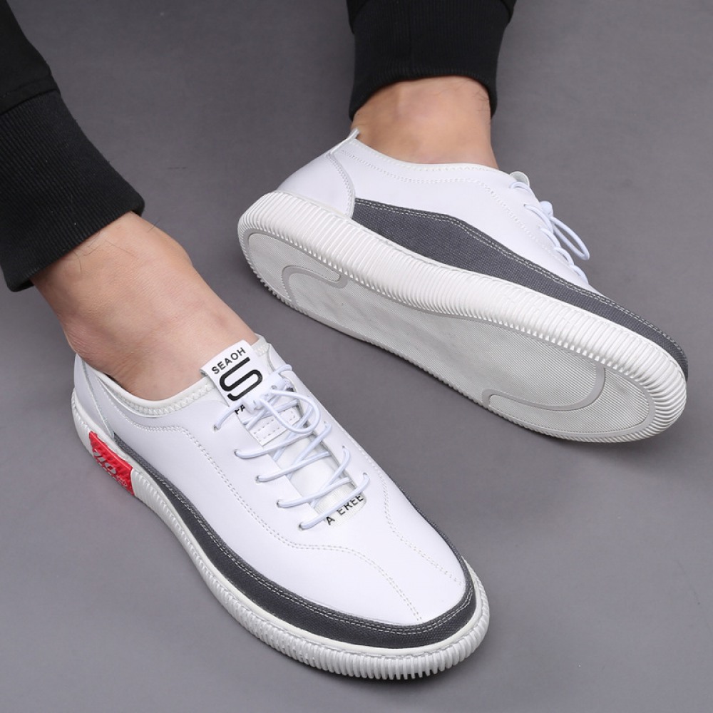Autumn New Leather White Breathable One-Foot Casual Shoes Lazy Shoes Trendy Men's