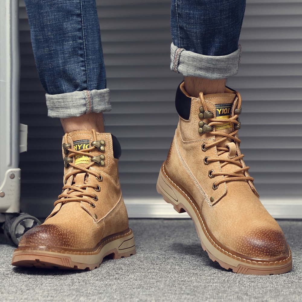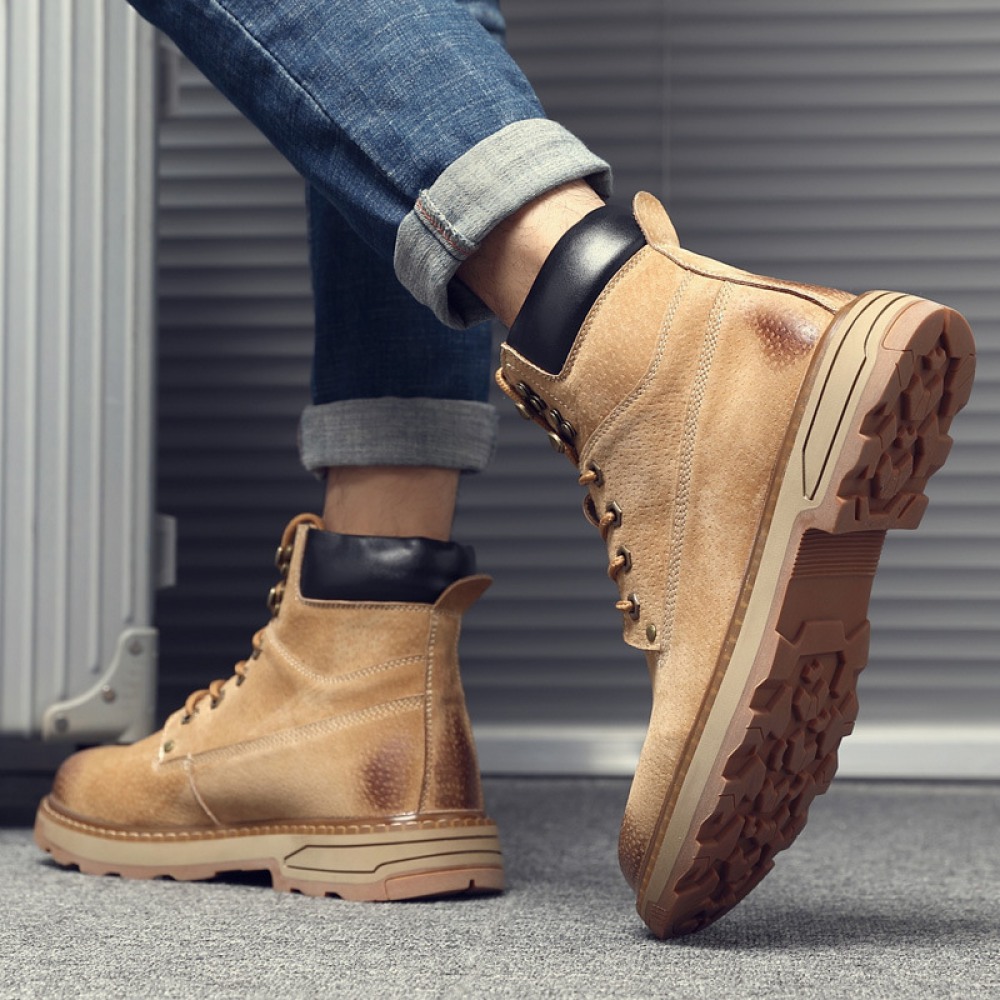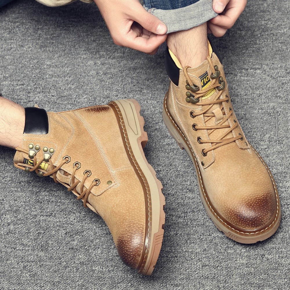 Men's Leather Martin Boots Winter Casual British Tooling Shoes
