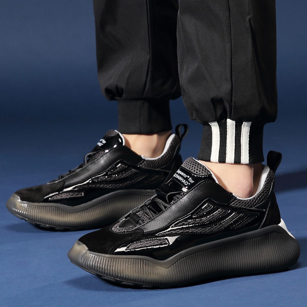 Men's Leather Fashion Casual Trendy Shoes Autumn Thick Soles Increased Breathable Mesh Sports Shoes
